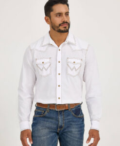 Wrangler® Men’s Wrangler Retro® Long Sleeve Western Snap Solid Dobby Shirt ( White )