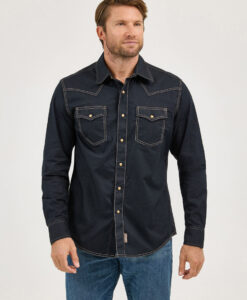 Wrangler® Men’s Wrangler Retro® Long Sleeve Western Snap Solid Dobby Shirt ( Black )