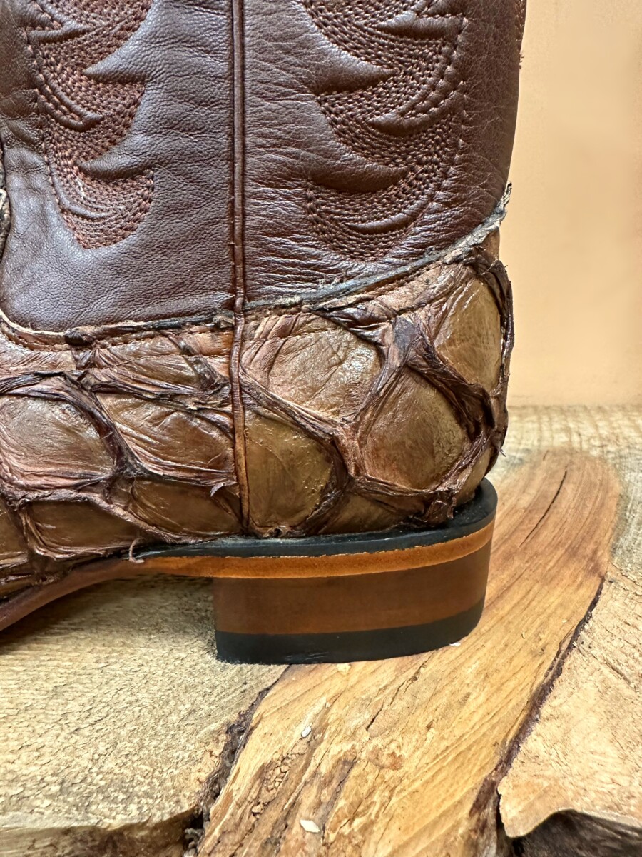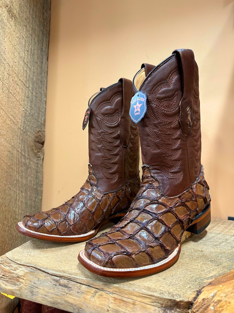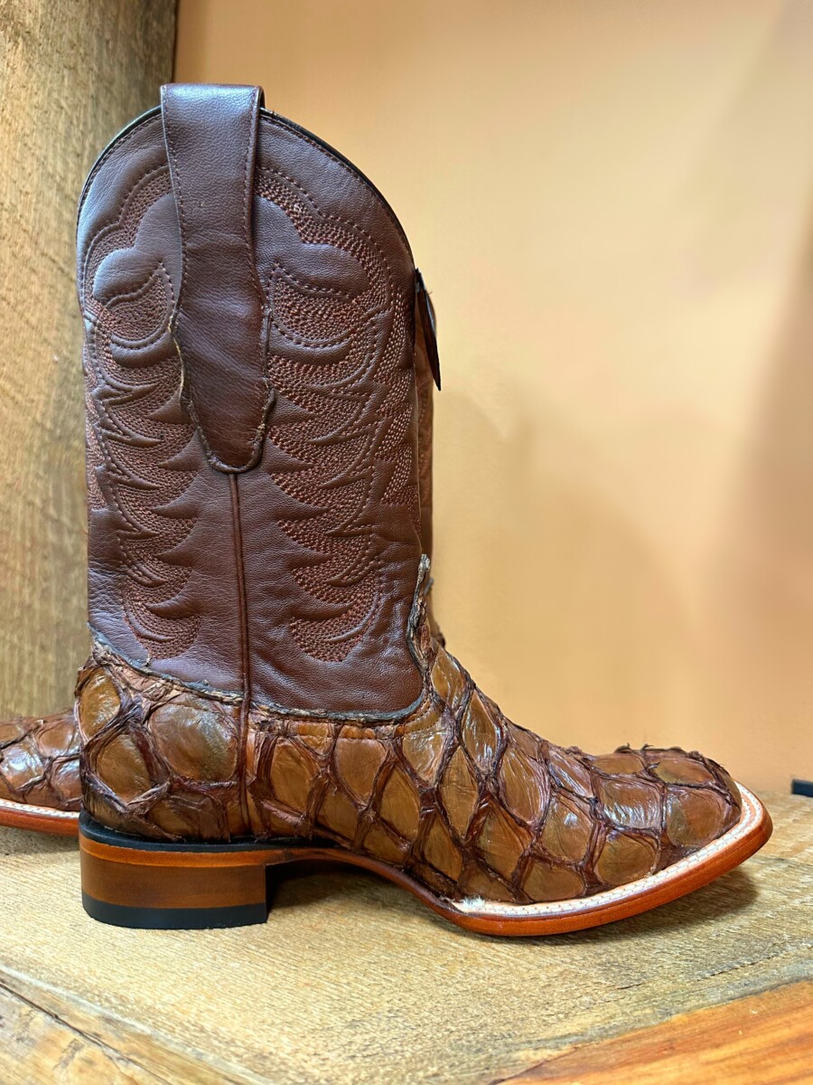 Los Altos – Wide Square Toe Pirarucu Boot (Brown Glossy)
