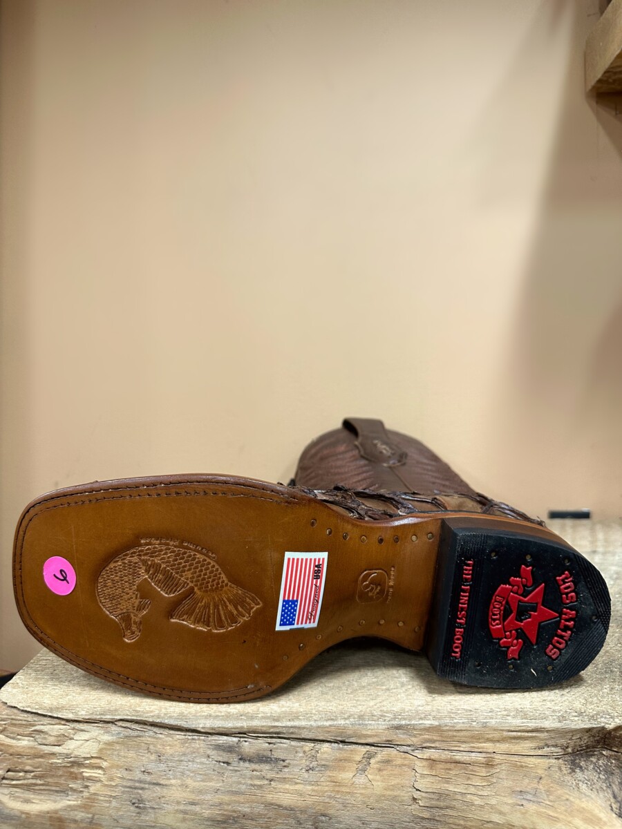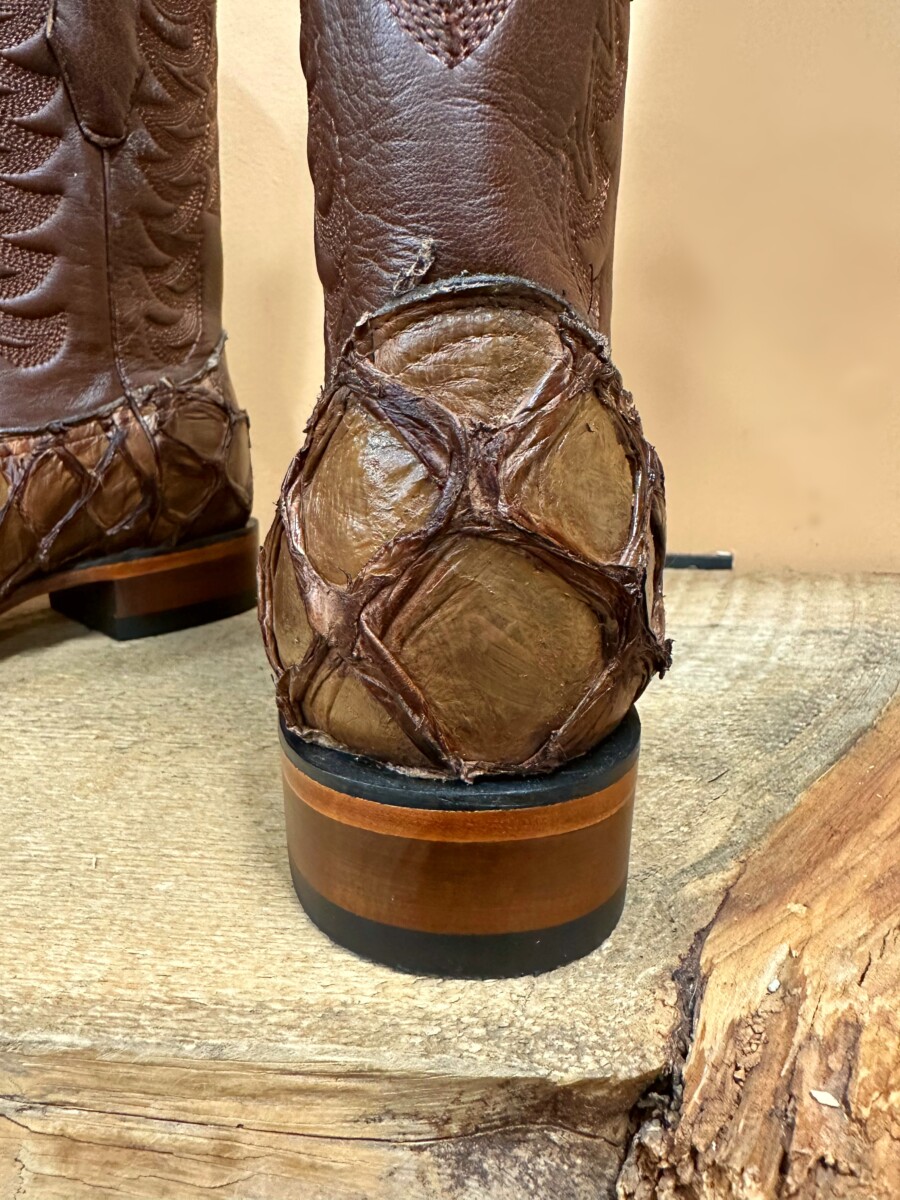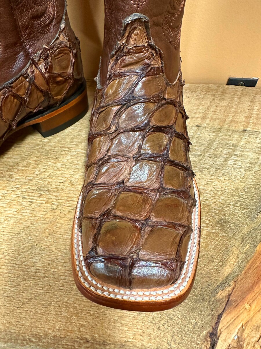 Los Altos – Wide Square Toe Pirarucu Boot (Brown Glossy)