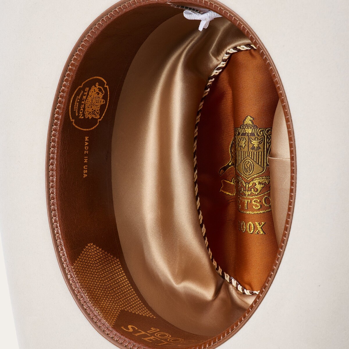 Each Diamante is finished with a gold deluxe satin liner and a premier roan leather sweatband with hand-debossed “Made By Stetson Especially For” personalization, up to 22 characters. This extraordinary hat includes a premium engraved red leather hat case and numbered certificate of authenticity.
