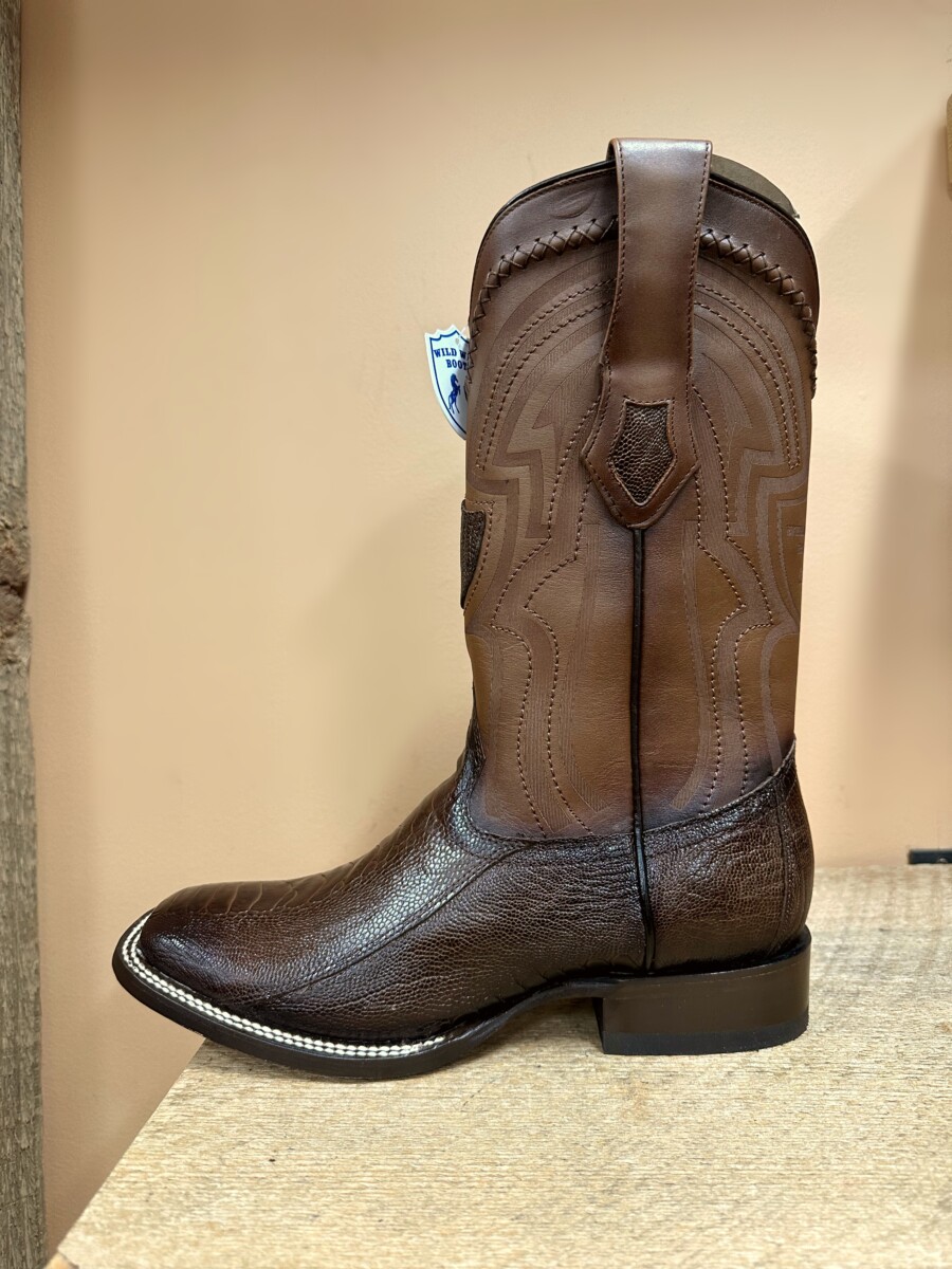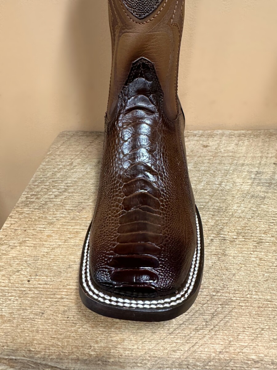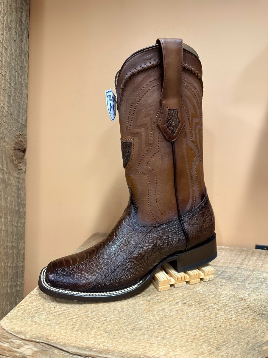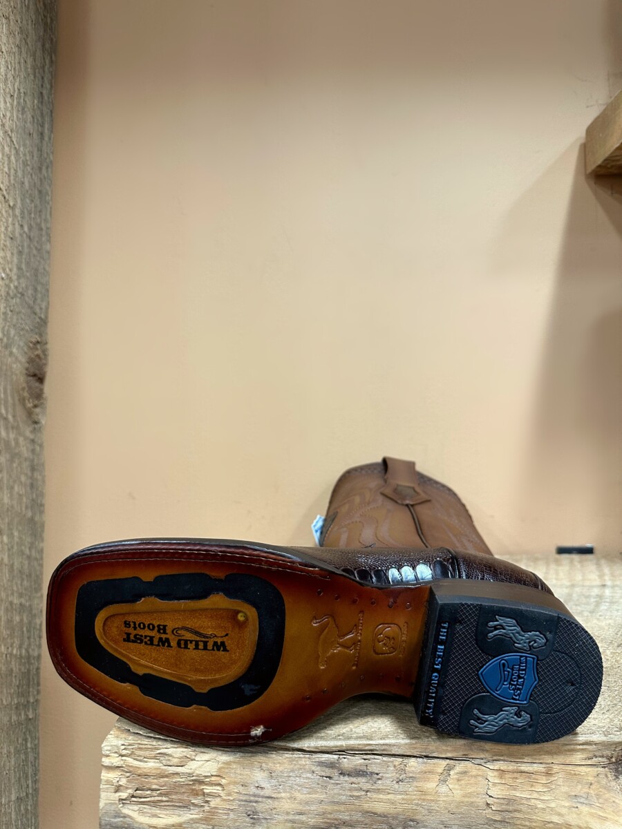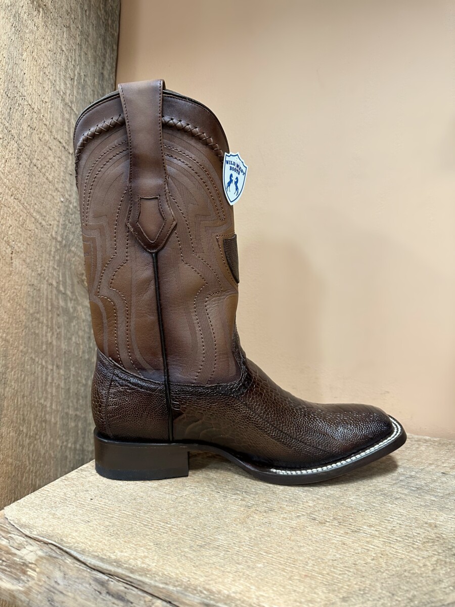 Wild West Mens boots Wide Square Ostrich Leg Brown