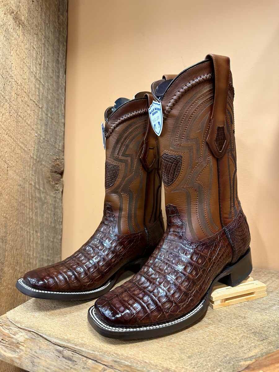 Wild West Mens boots Wide Square Toe Caiman Belly Brown