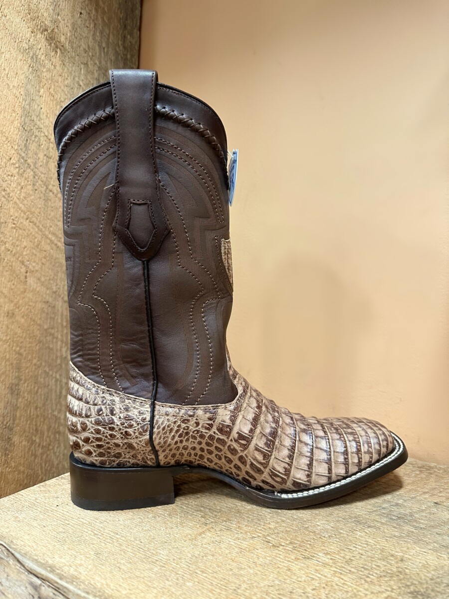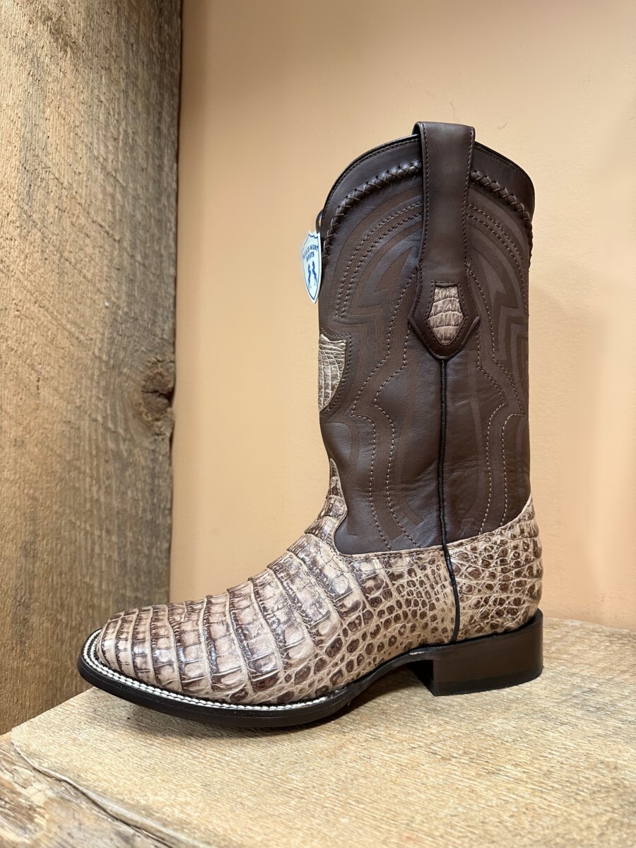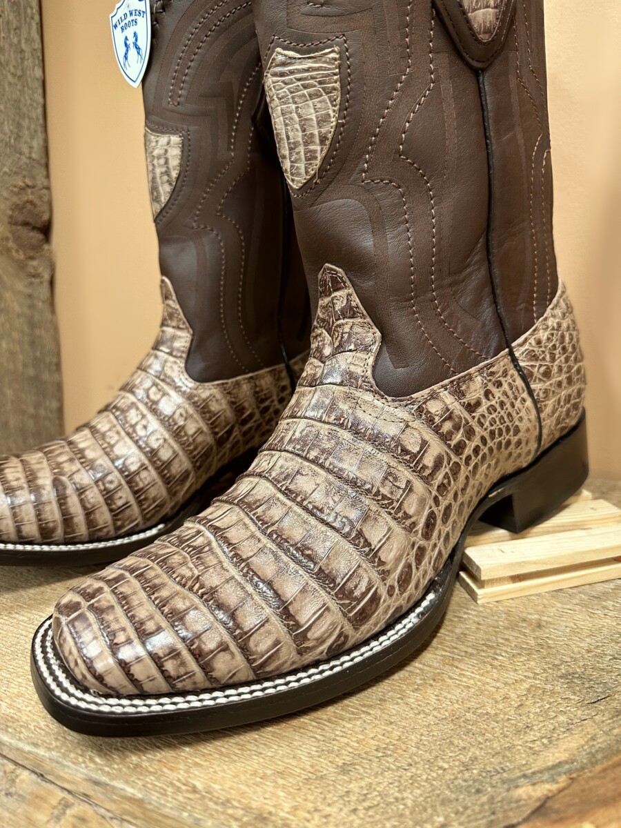 Wild West – Mens boots Wide Square Toe Caiman Belly Mocha Leather Sole