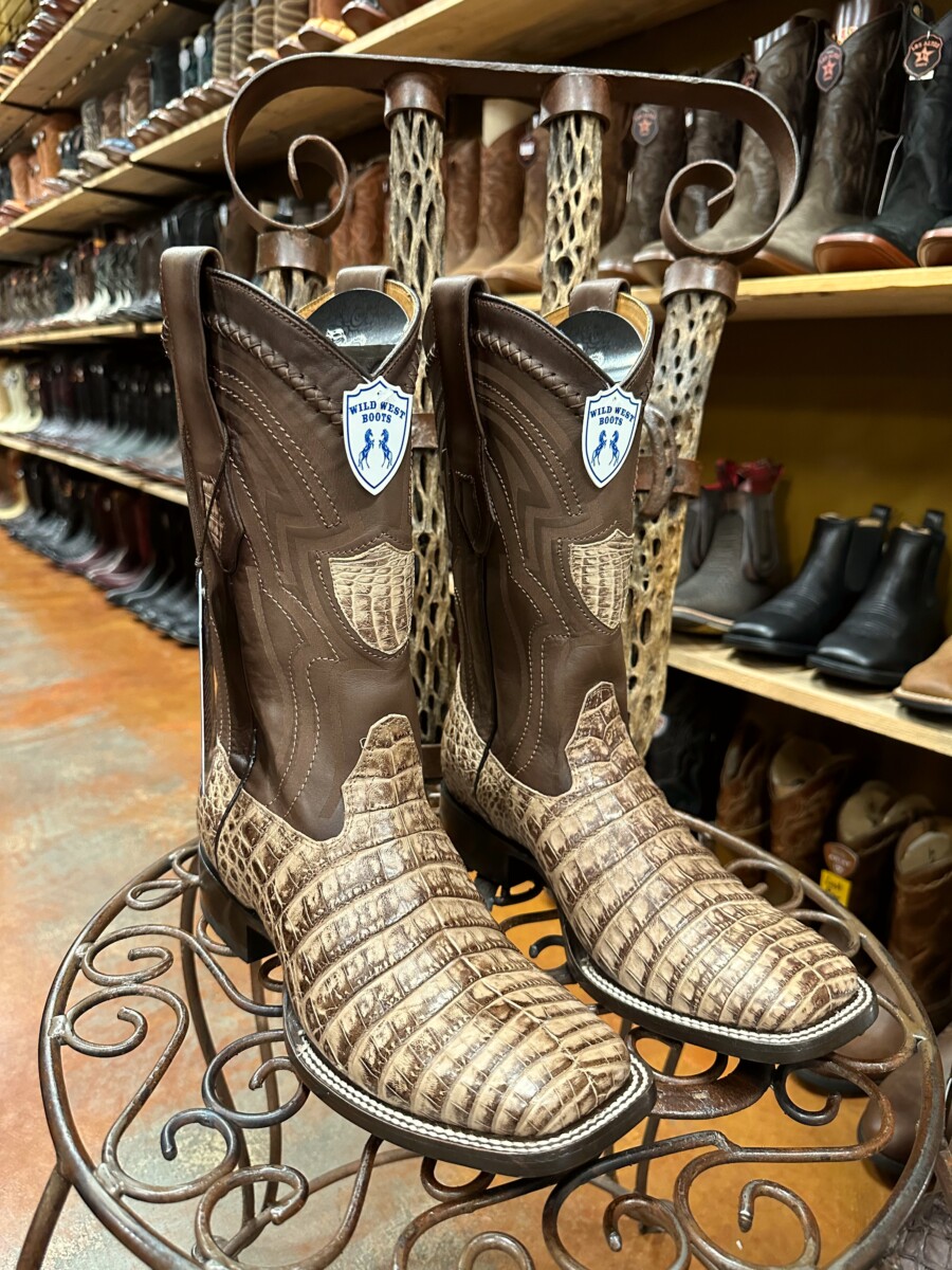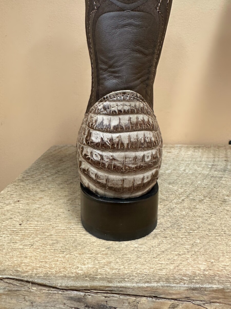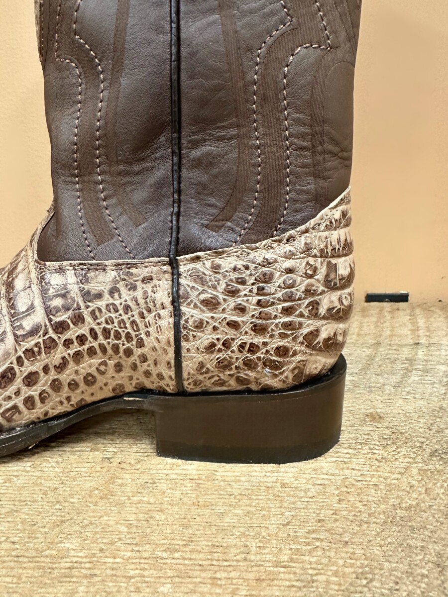 Wild West – Mens boots Wide Square Toe Caiman Belly Mocha Leather Sole
